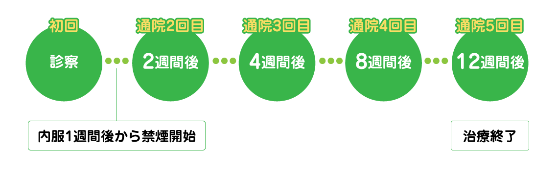 原則として2週間毎に外来受診してもらい問診、診察、処方を繰り返します。期間は8~12週間です。